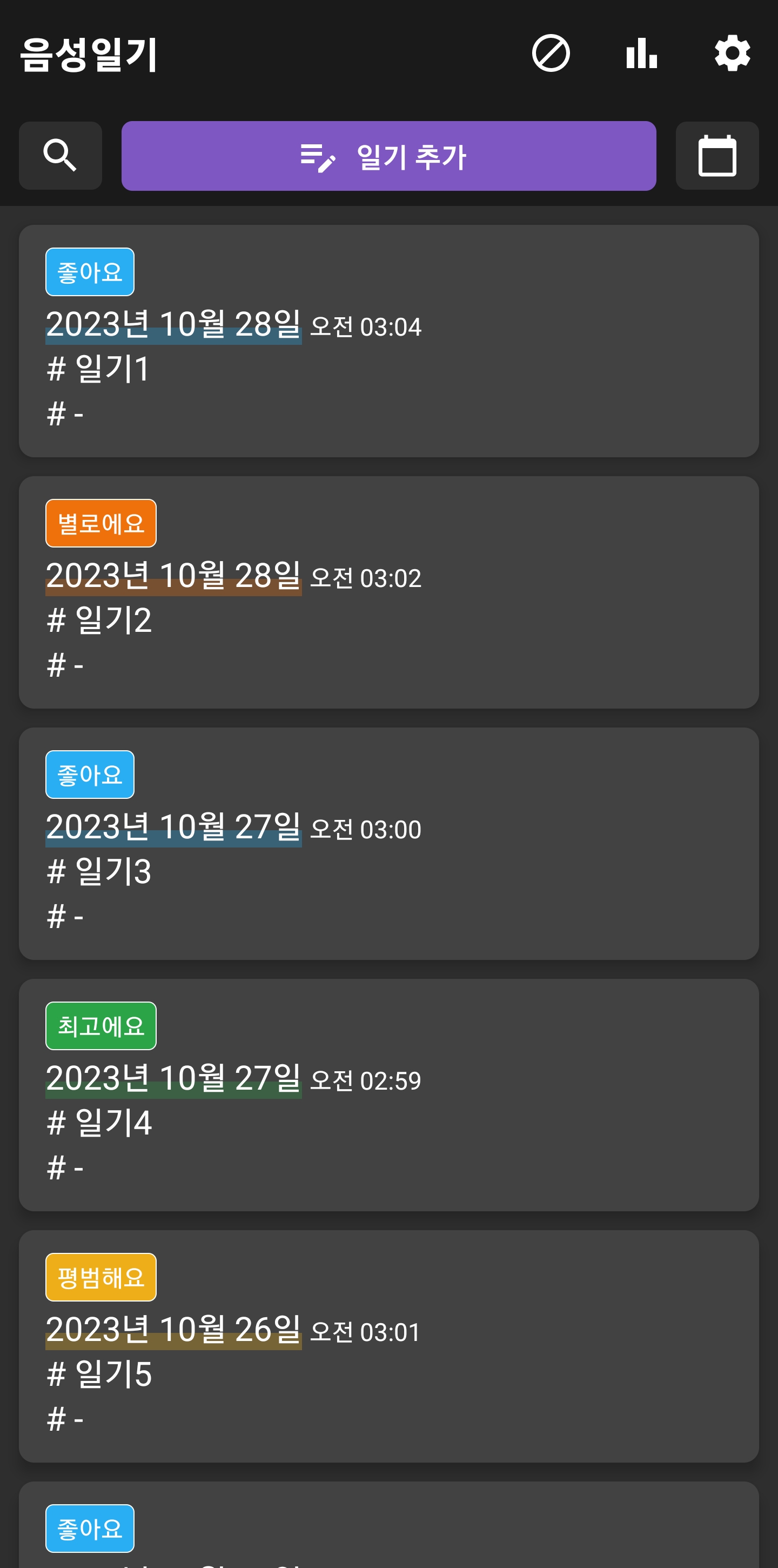 - 제목으로 제목과 내용으로 음성일기를 검색할 수 있습니다.