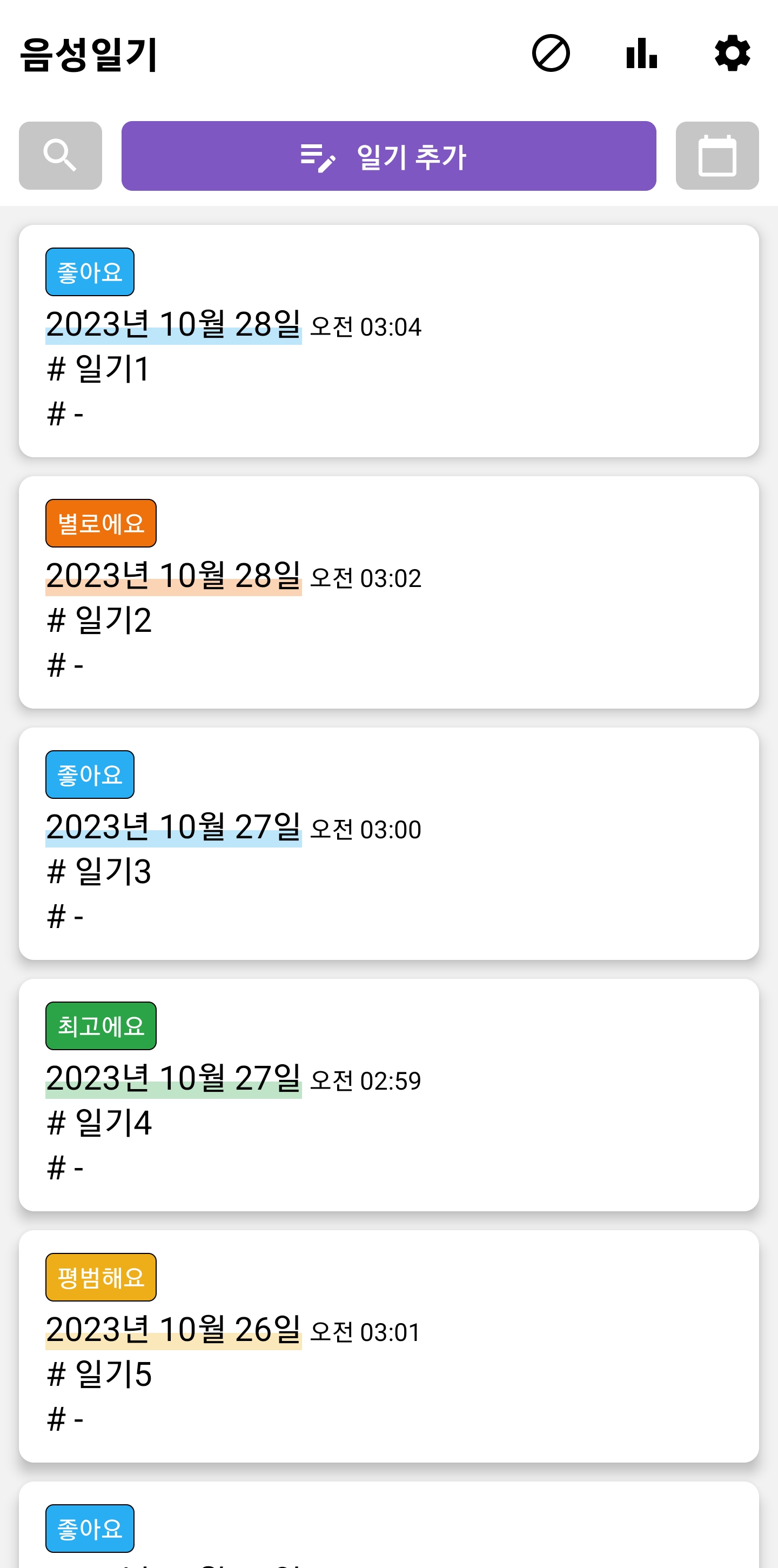 - 달력에서 음성일기를 작성한 날에 감정을 확인할 수 있습니다.
